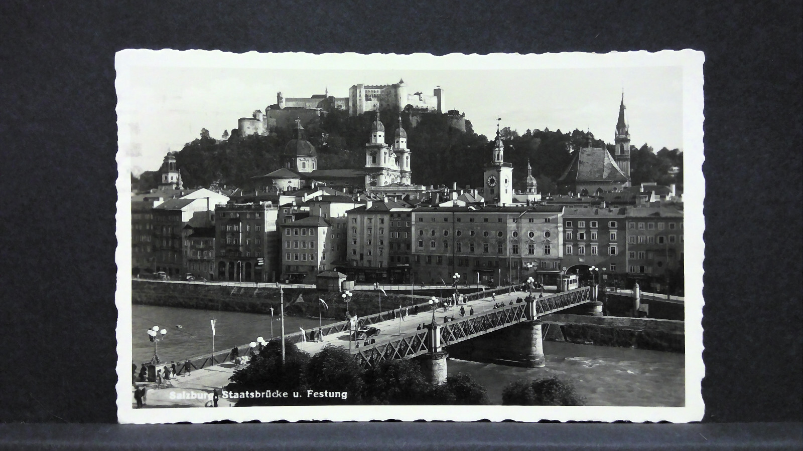 Salzburg Staatsbrücke und Festung Hohensalzburg Salzach JW5711