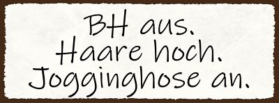Schild bh aus haare hoch jogginghose an zuhause ausruhen 27x10 blech od.holz