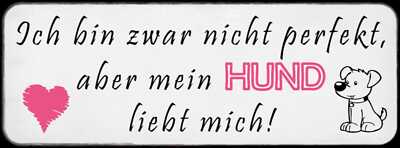Schild ich bin zwar nicht perfekt aber mein hund liebt mich 27x10 blech od.holz