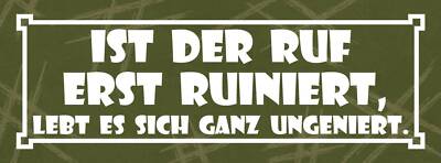 Schild ist der ruf erst ruiniert lebt es sich ganz ungeniert 27x10 blech od.holz
