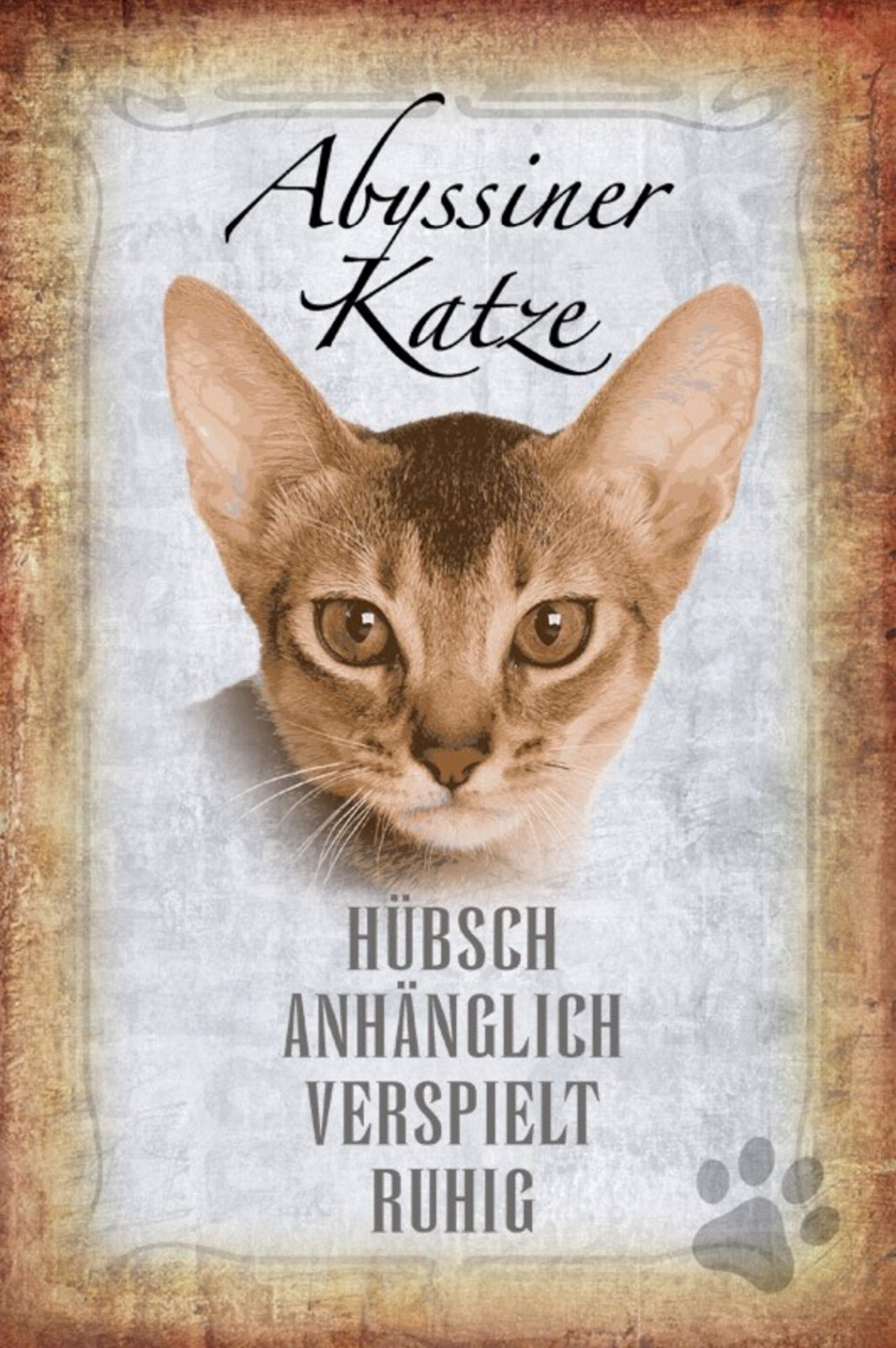 Schild Spruch Abyssiner Katze Steckbrief Hübsch Verspiel Ruhig JW