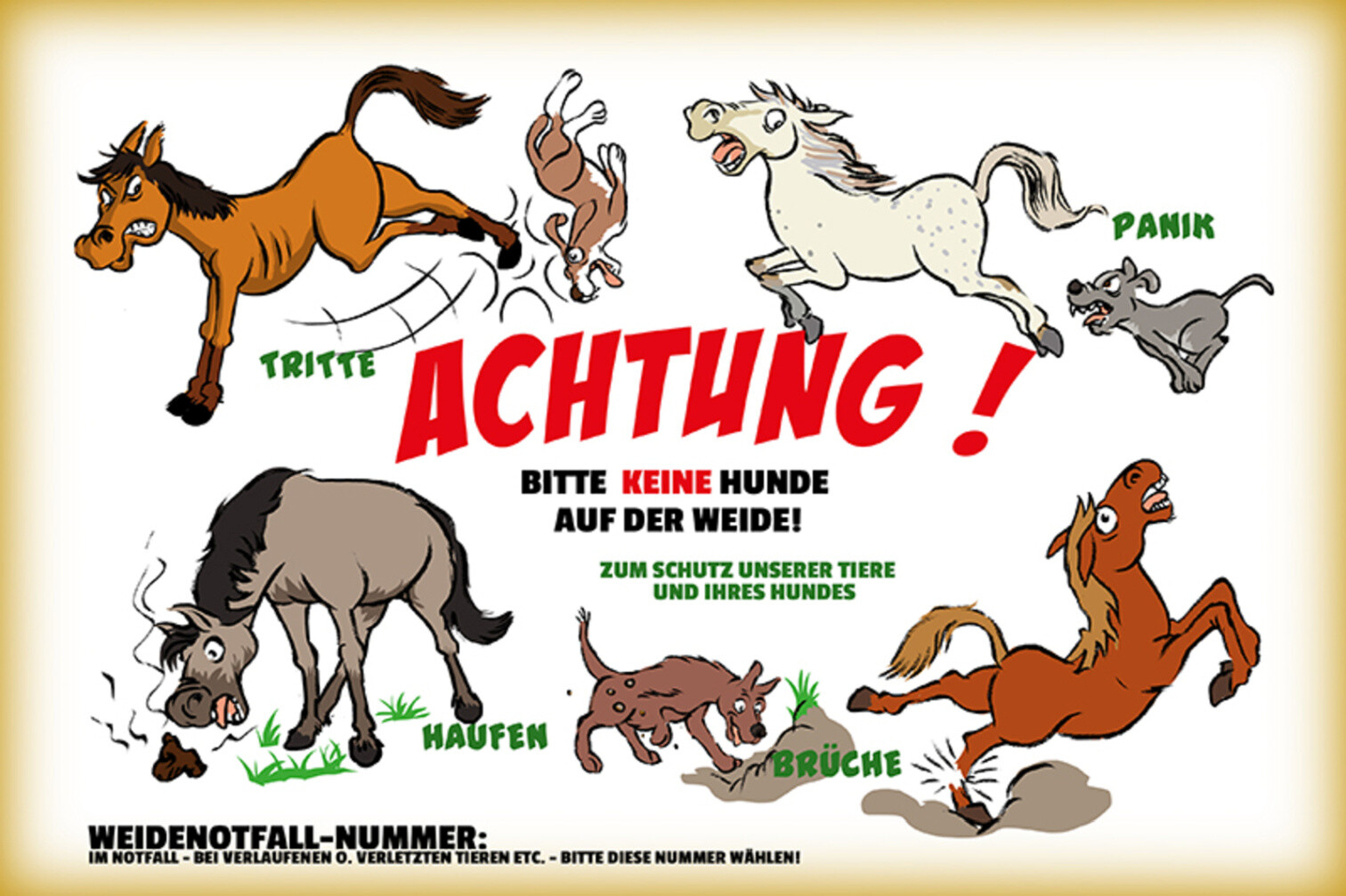 Schild Spruch Achtung Bitte keine Hude auf der Weide JW