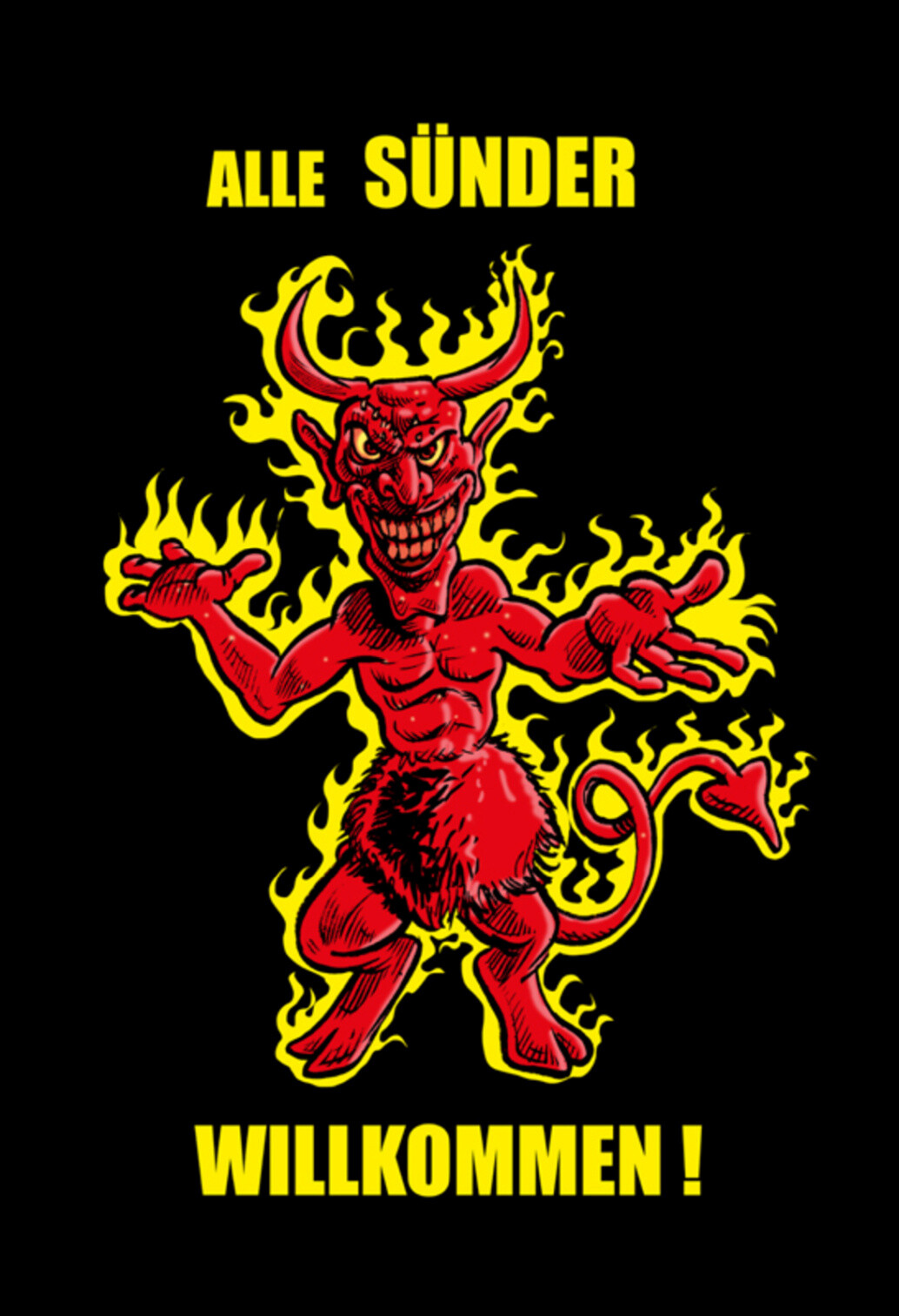 Schild Spruch Alle Sünder willkommen! Teufel JW