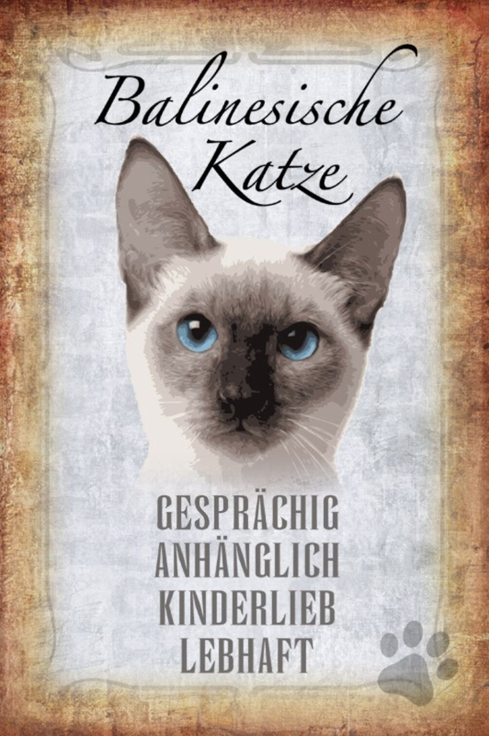 Schild Spruch Balinesische Katze Steckbrief Gesprächig Lebhaft JW