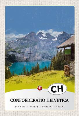 Schild spruch confoederatio helvetica switzerland schweiz berge see hütte jw