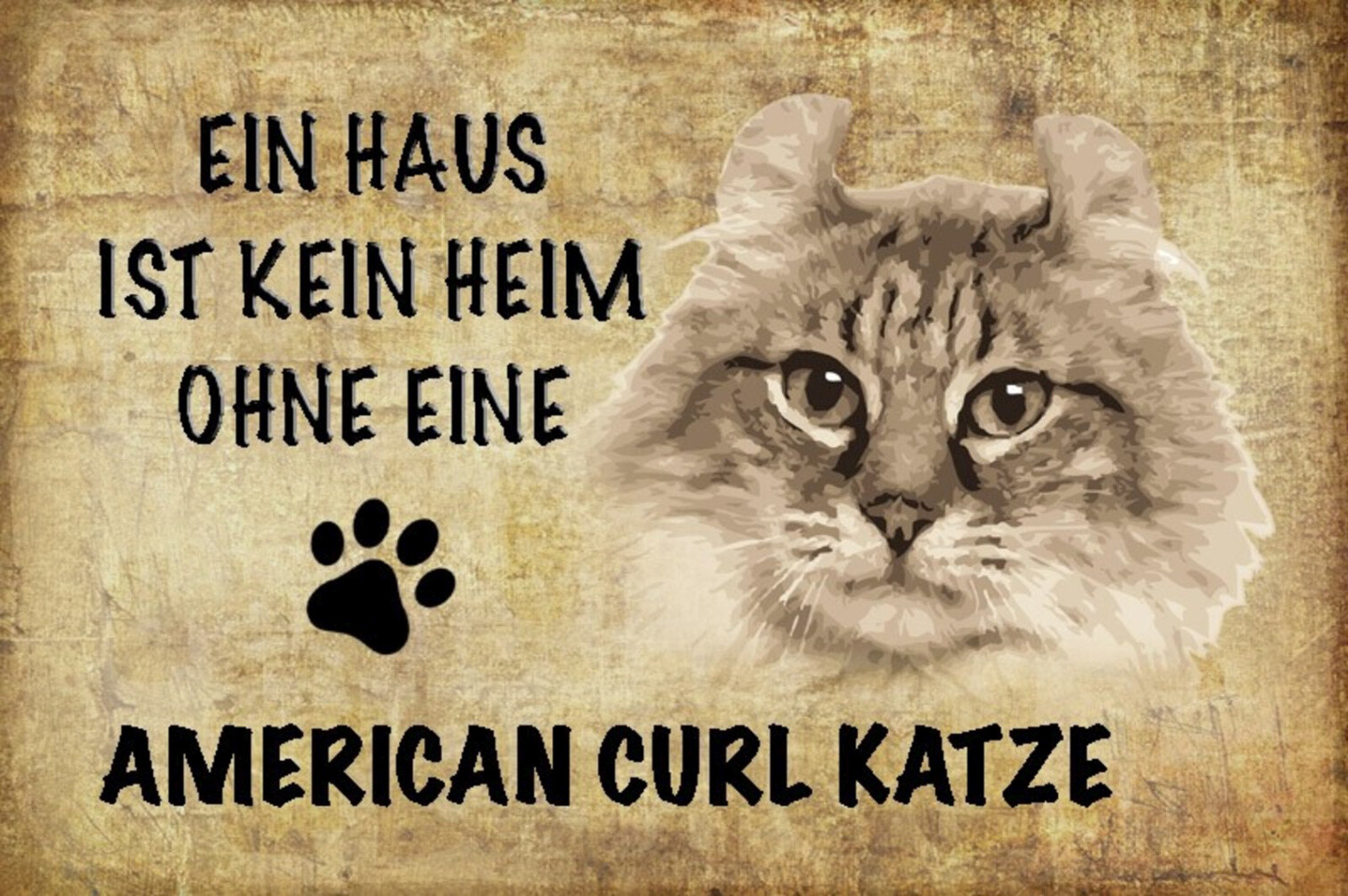 Schild Spruch Haus ist kein Heim ohne American Curl Katze JW