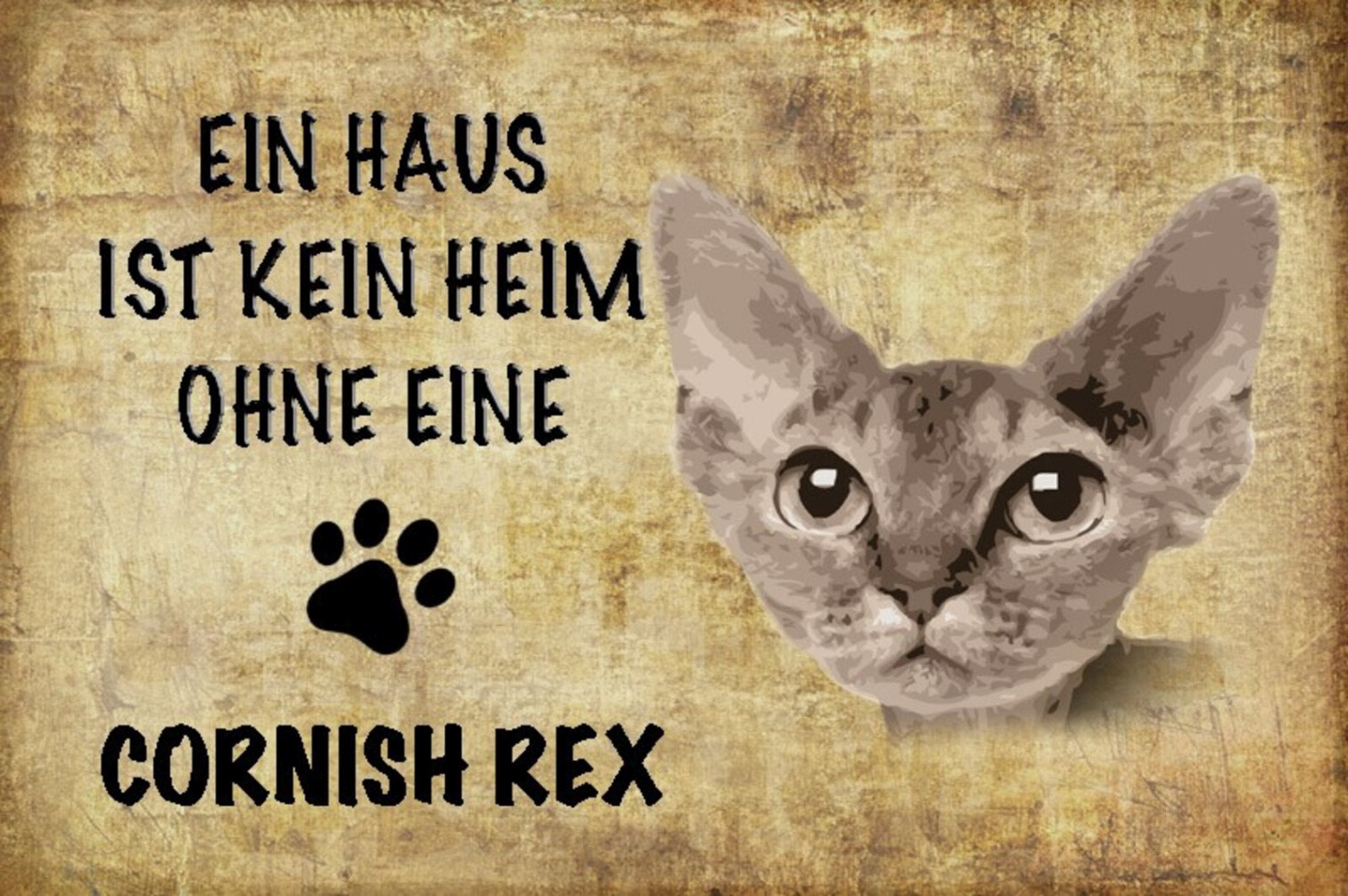 Schild Spruch Haus ist kein Heim ohne Cornish Rex Katze JW