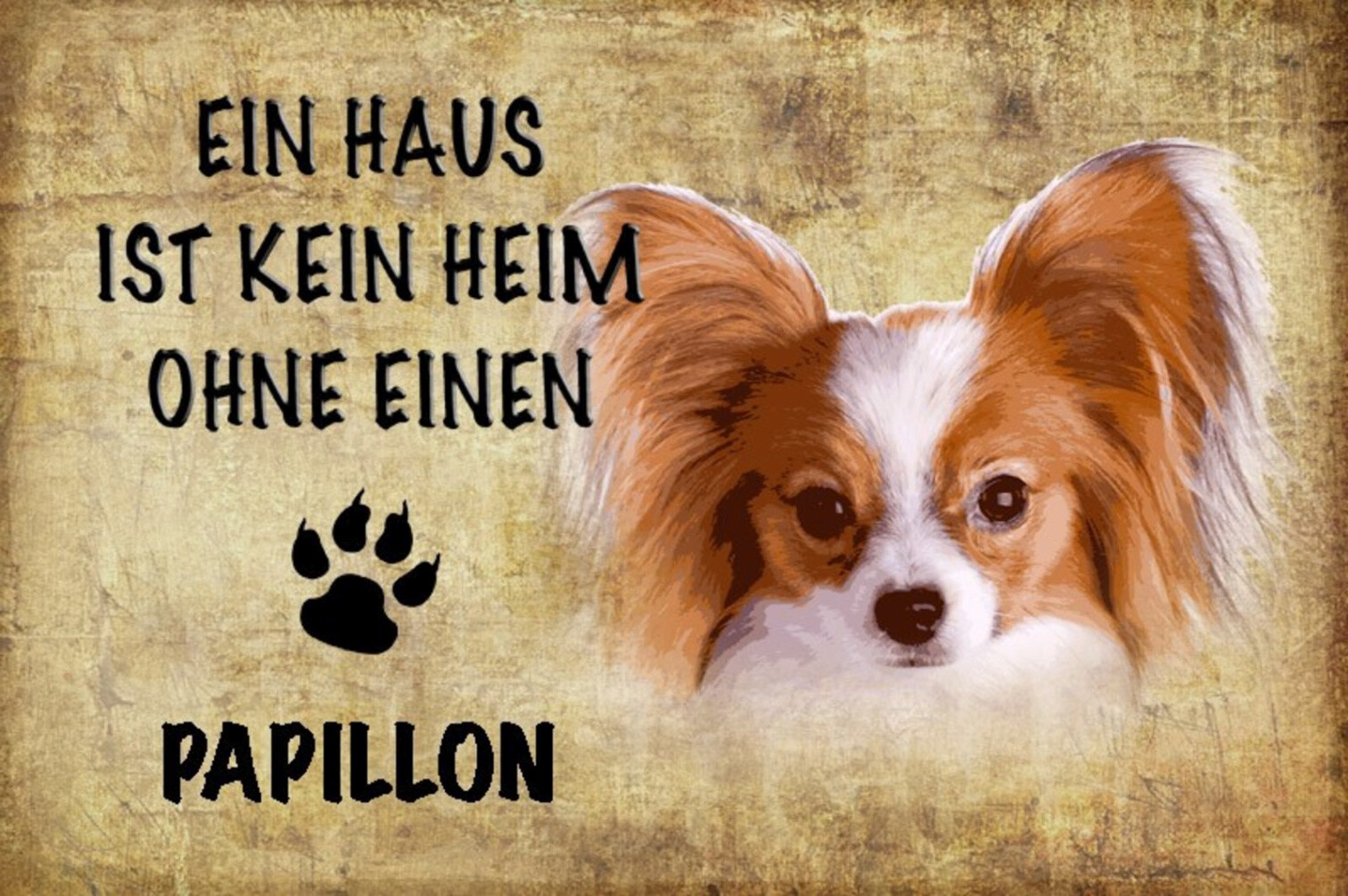 Schild Spruch Haus ist kein Heim ohne Papillon Hund JW