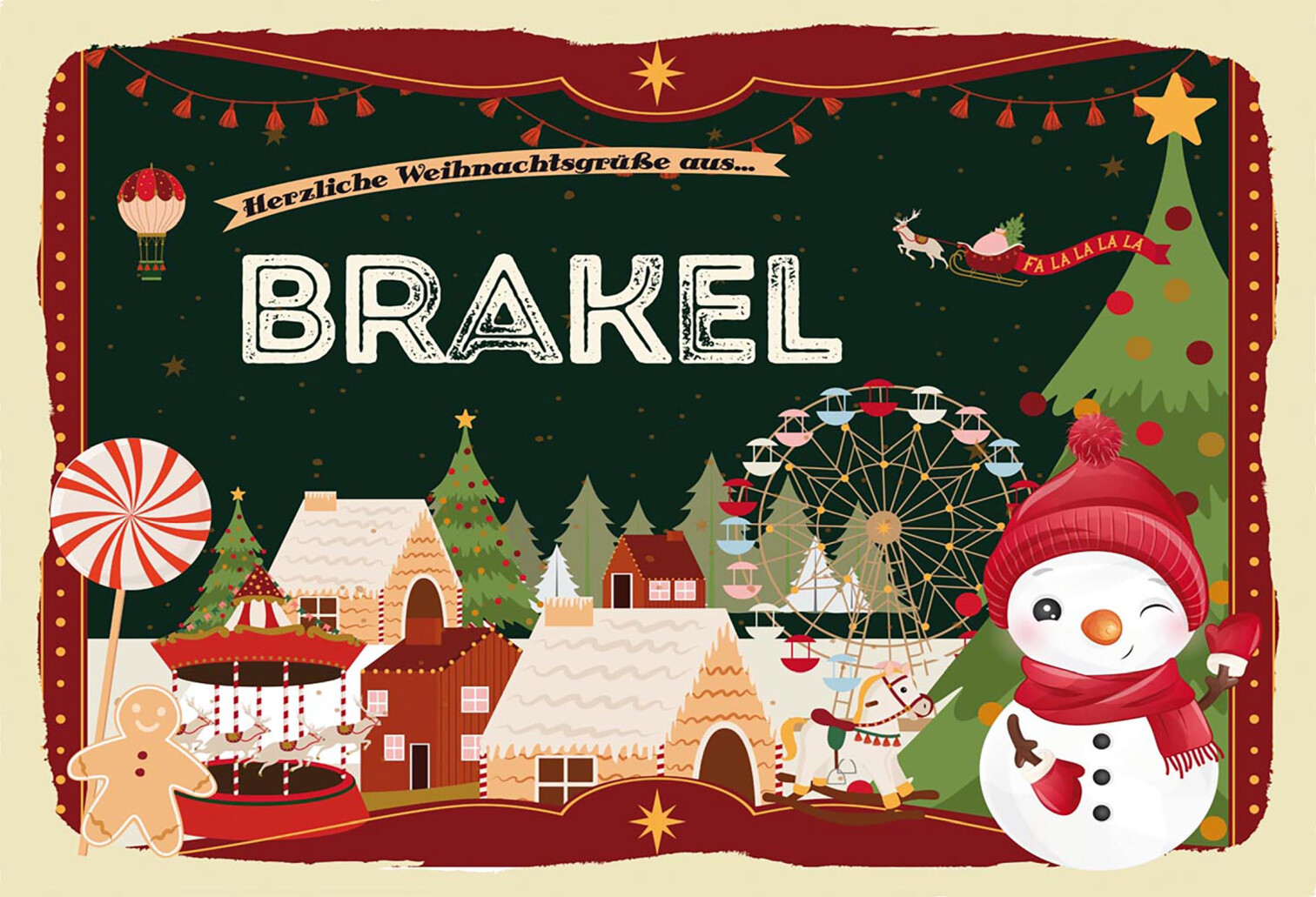Schild Spruch Herzliche Weihnachtsgrüße aus Brakel Comic Schneemann JW