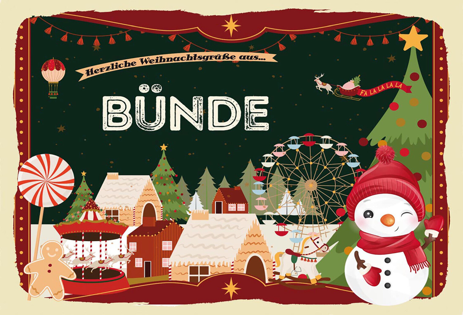 Schild Spruch Herzliche Weihnachtsgrüße aus Bünde Comic Schneemann JW