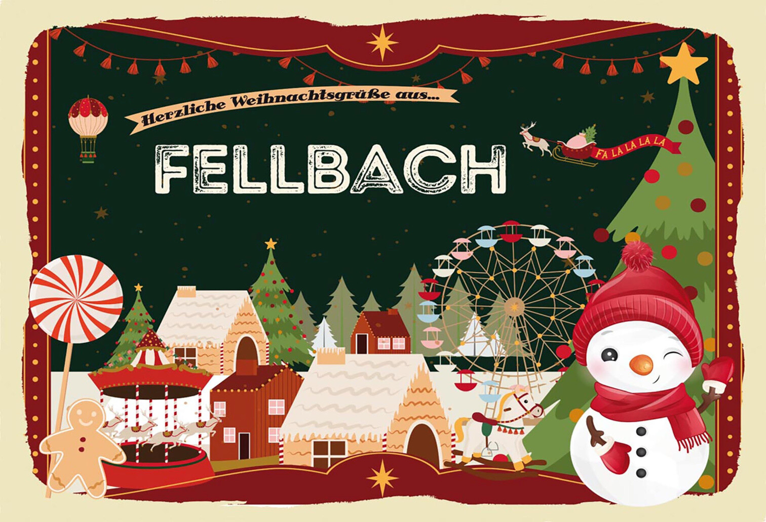 Schild Spruch Herzliche Weihnachtsgrüße aus Fellbach Comic Schneemann JW