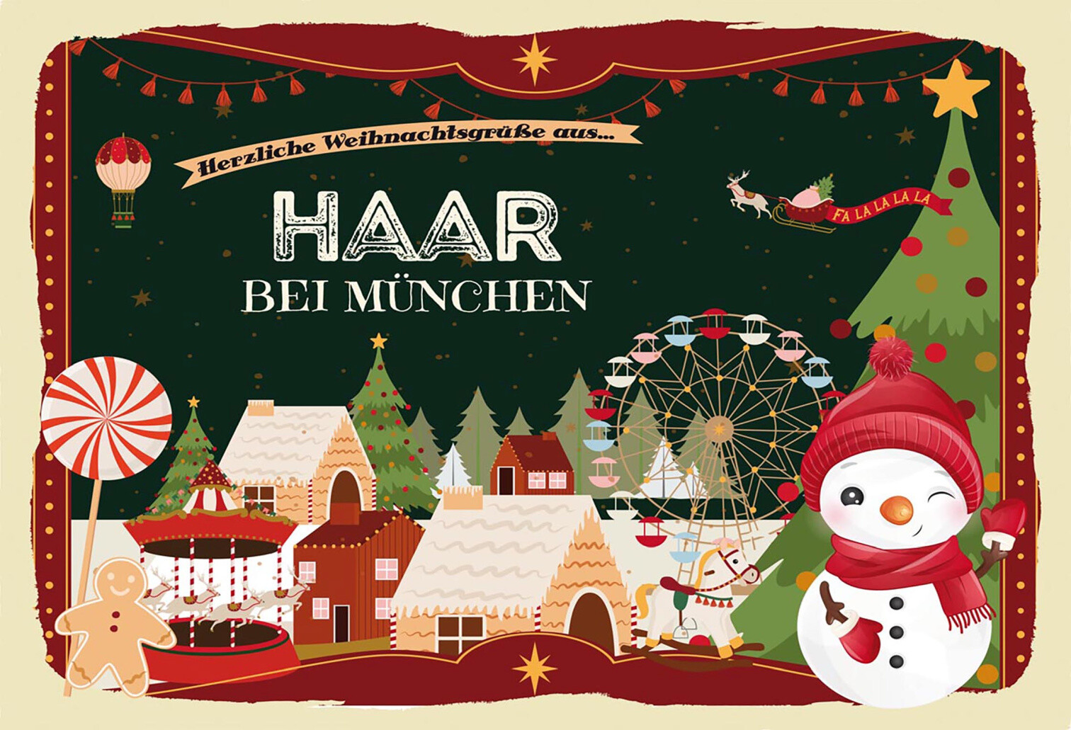 Schild Spruch Herzliche Weihnachtsgrüße aus Haar bei München Comic JW