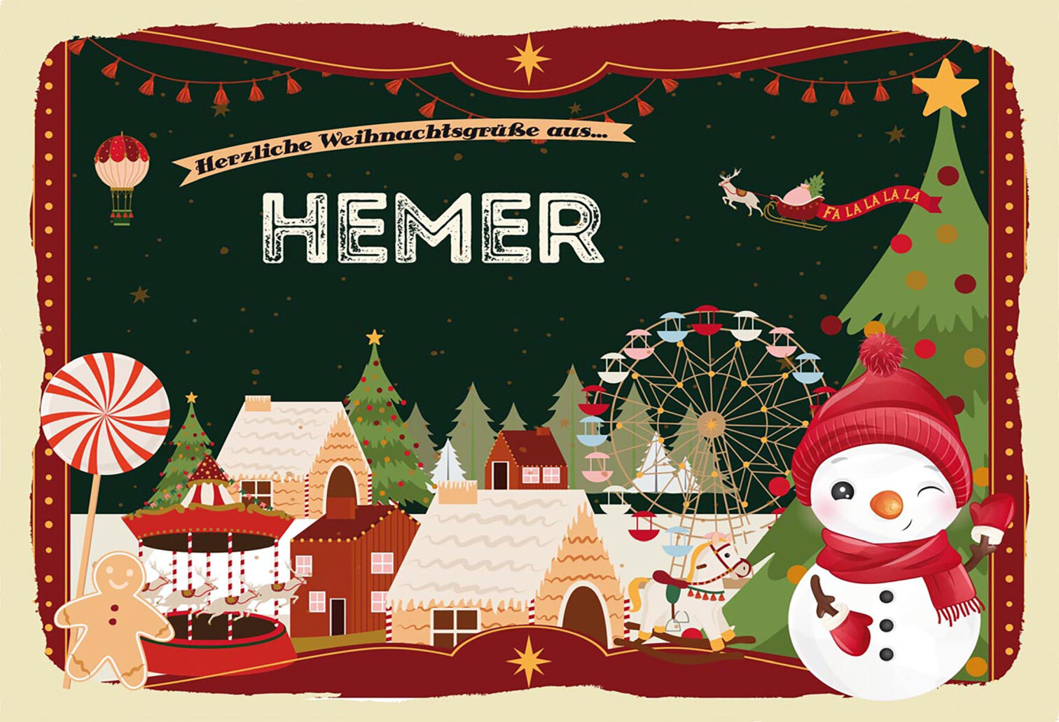 Schild Spruch Herzliche Weihnachtsgrüße aus Hemer Comic Schneemann JW