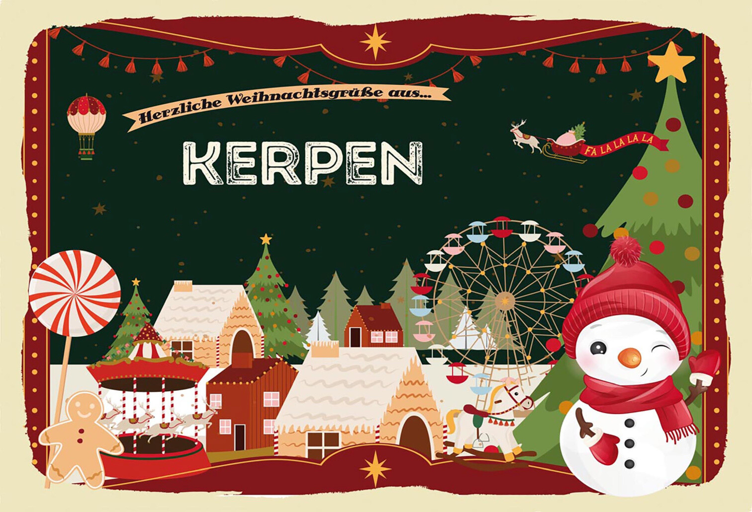 Schild Spruch Herzliche Weihnachtsgrüße aus Kerpen Comic Schneemann JW