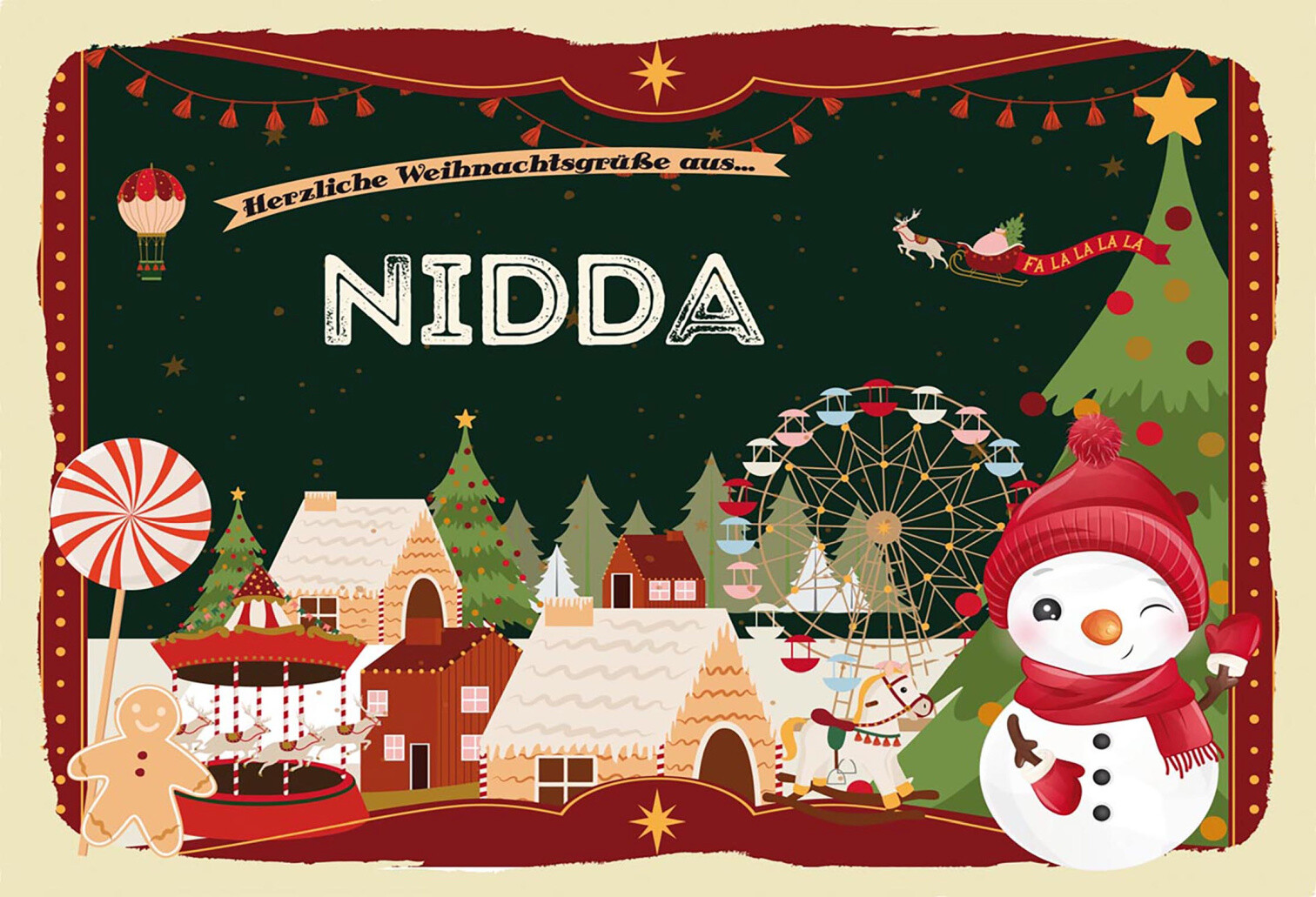 Schild Spruch Herzliche Weihnachtsgrüße aus Nidda Comic Schneemann JW