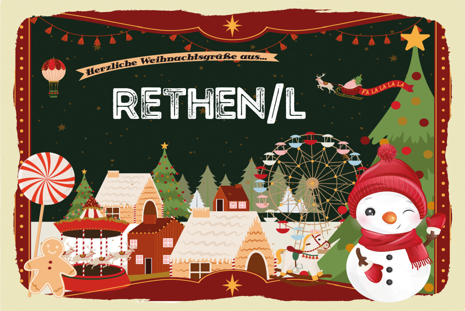 Schild Spruch Herzliche Weihnachtsgrüße aus Rethen/l Comic Schneemann JW