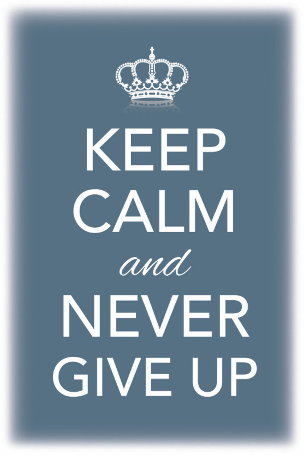 Schild Spruch Keep Calm and never give up Ruhig bleiben nie aufgeben JW