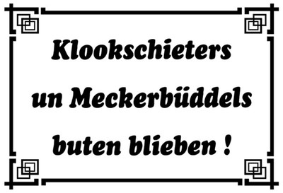 Schild Spruch Klookschieters un Meckerbüddels buten blieben Dialekt JW