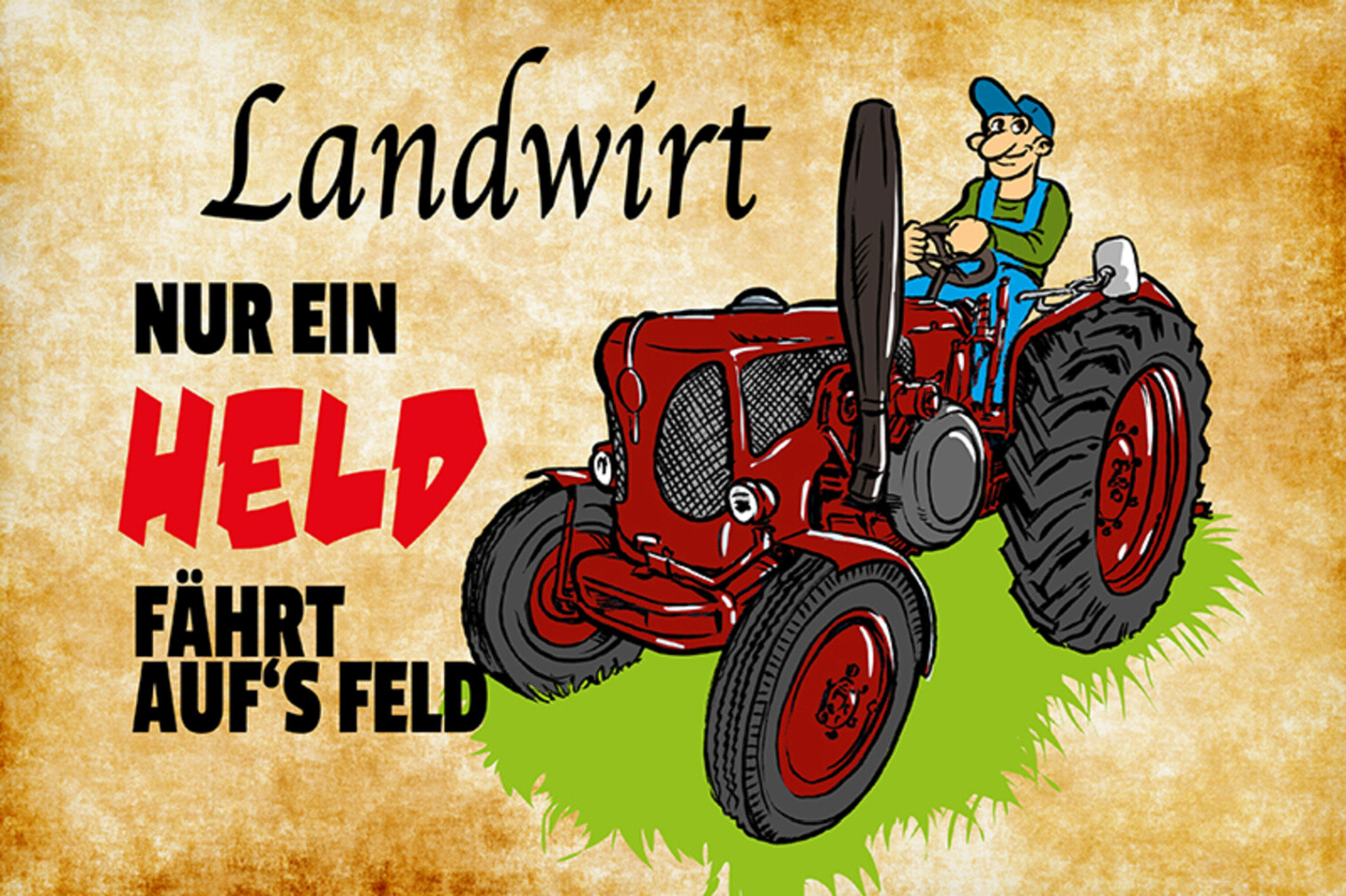 Schild Spruch Landwirt Nur ein Held fährt aufs Feld Bauer JW
