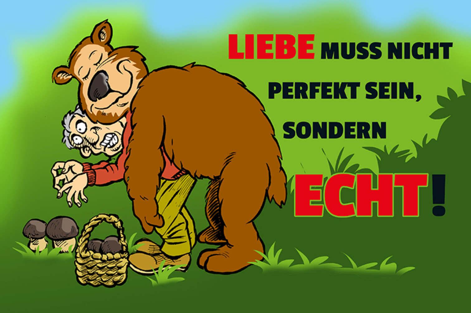Schild Spruch Liebe muss nicht perfekt sein sondern echt Bär Mann JW