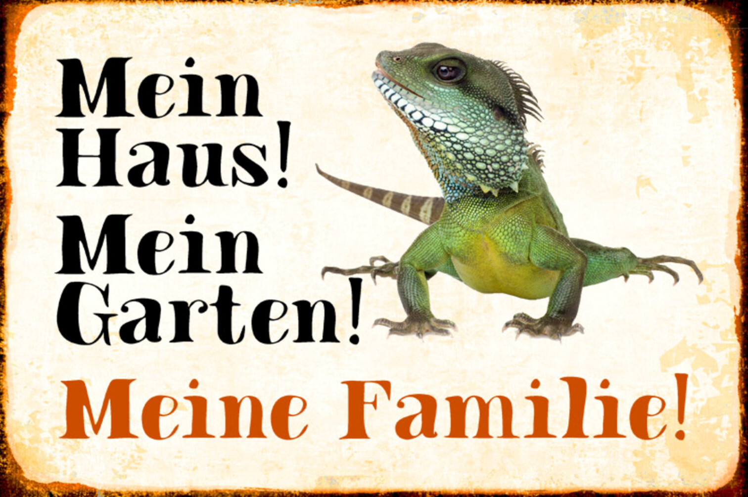 Schild Spruch Mein Haus Mein Garten Meine Familie Echse JW