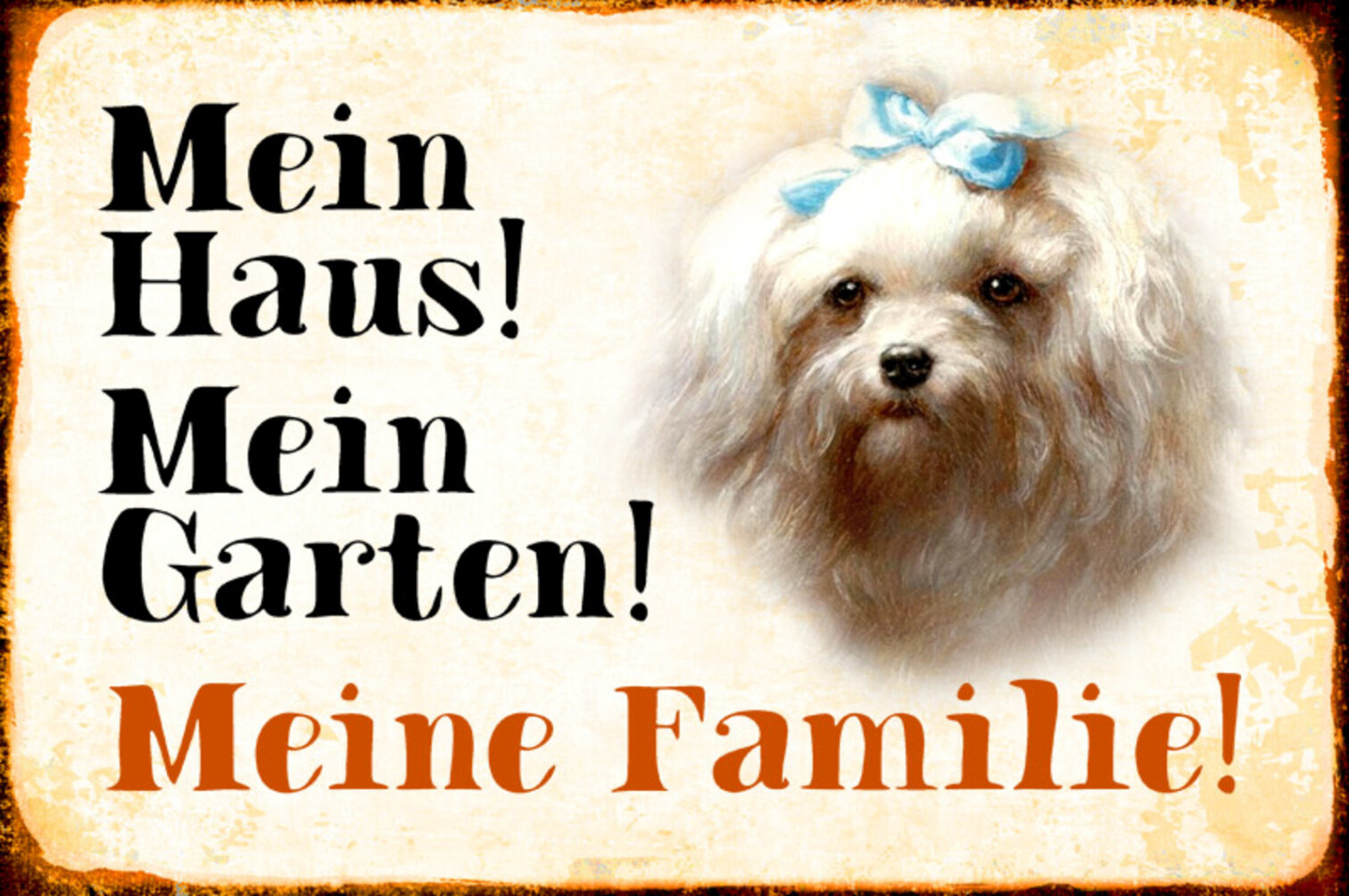 Schild Spruch Mein Haus Mein Garten Meine Familie Hund JW