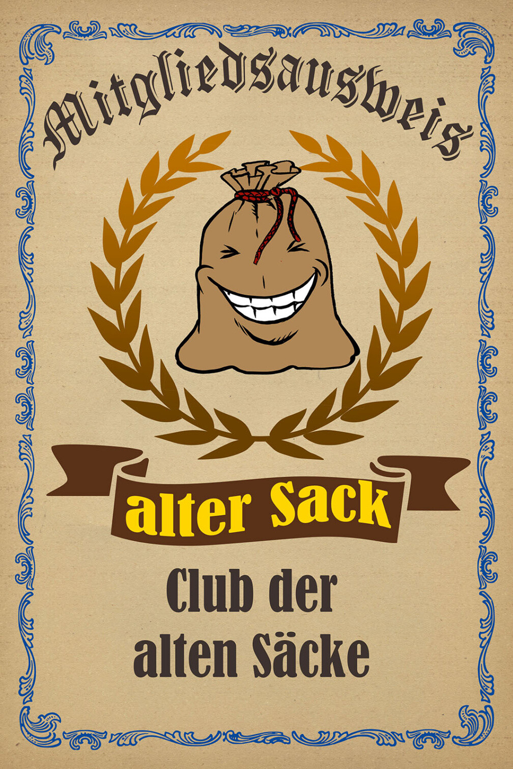 Schild Spruch Mitgliedsauswei Alter Sack Club der alten Säcke JW
