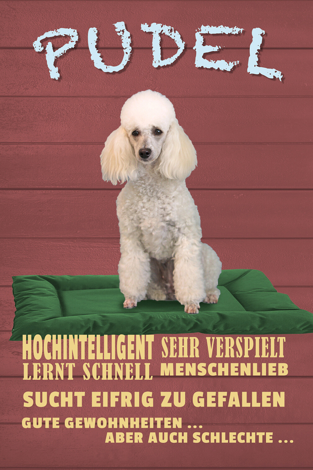 Schild Spruch Pudel Steckbrief Hochintelligent sehr verspielt Hund JW