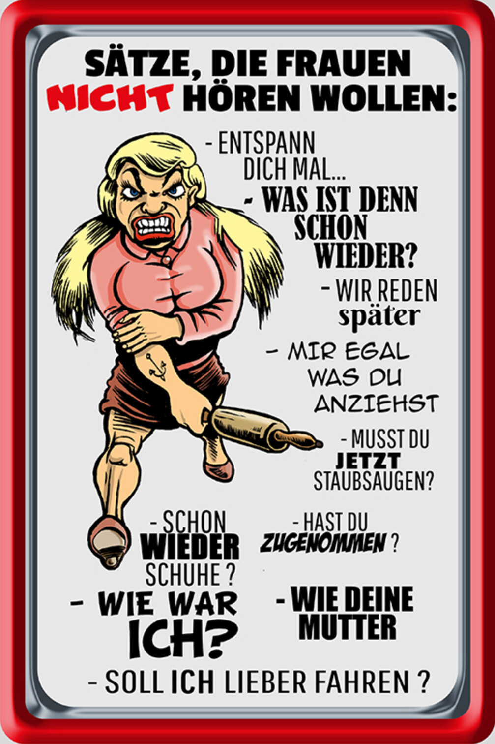 Schild Spruch Sätze die Frauen nicht hören wollen Schon wieder Schuhe JW