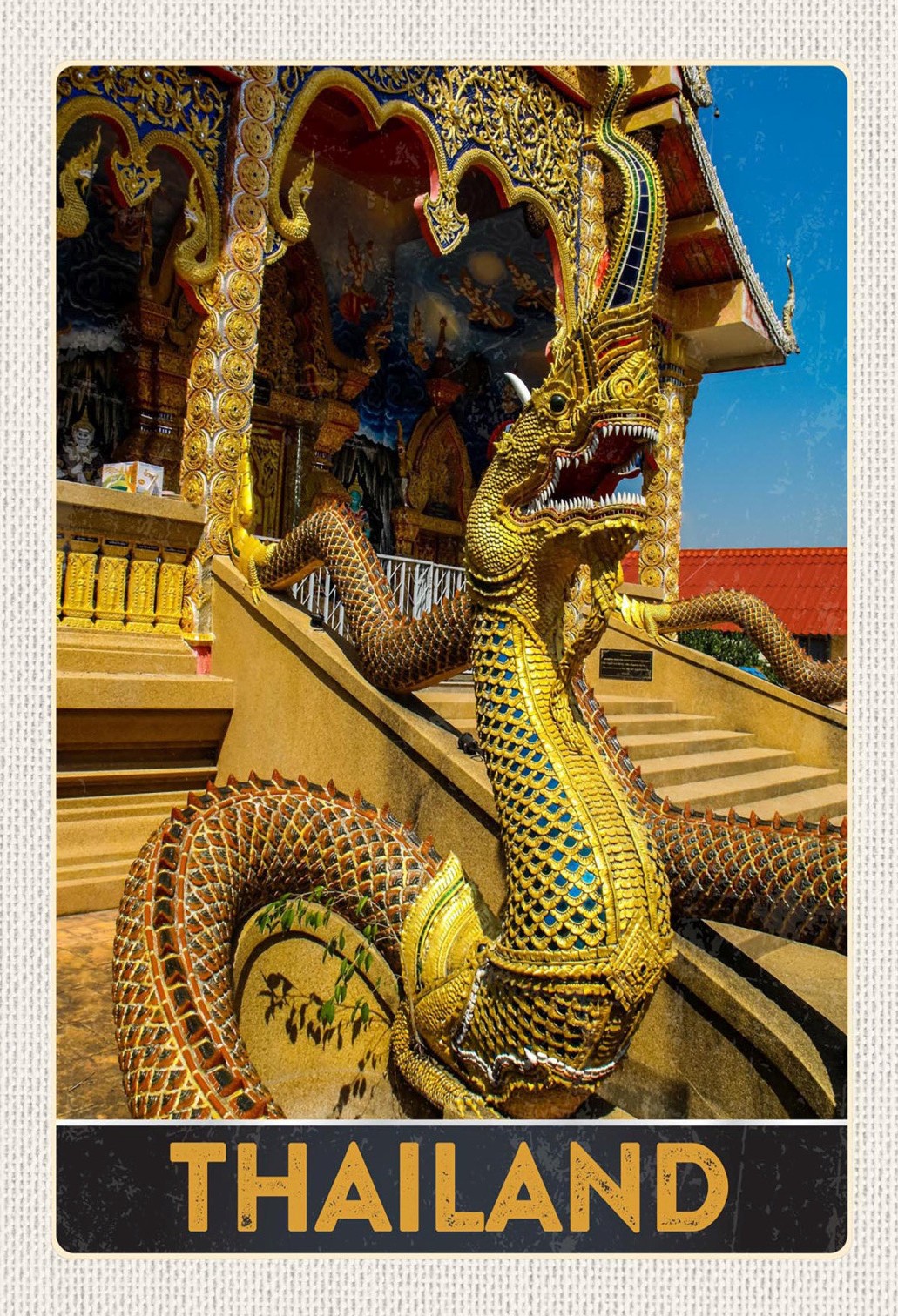 Schild Spruch Thailand Tempel Drache Gold JW