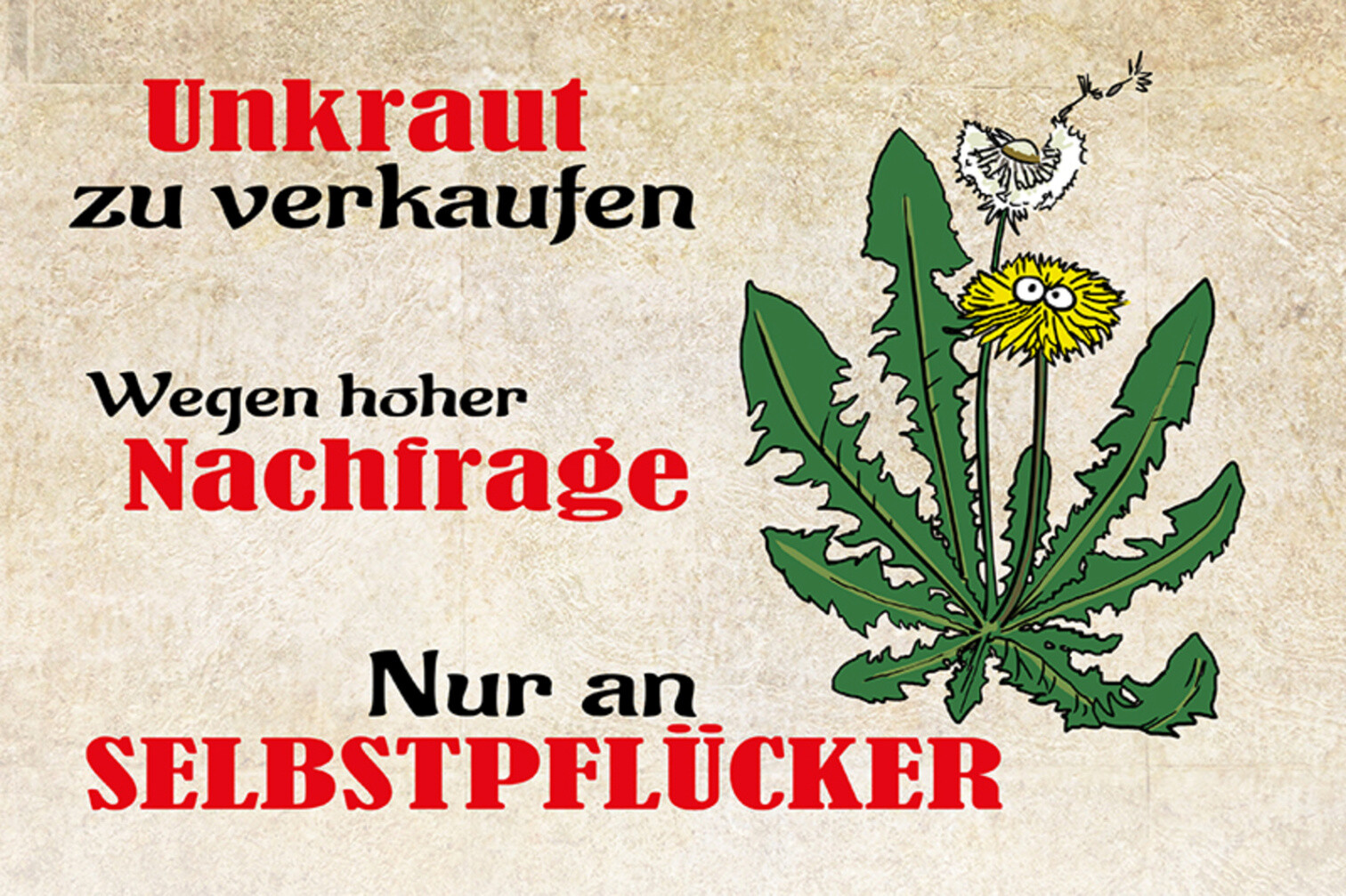 Schild Spruch Unkraut zu verkaufen Nur an Selbstpflücker JW