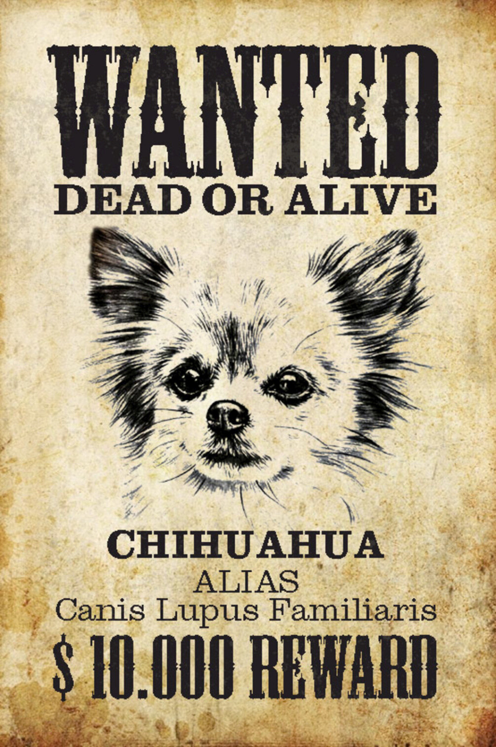 Schild Spruch Wanted Dead or Alive Gesucht Tot Lebend Chihuahua Hund JW