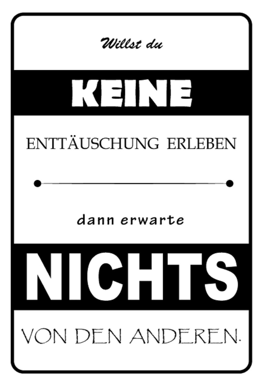 Schild Spruch Willst du keine Enttäuschungen erleben erwarte nichts JW