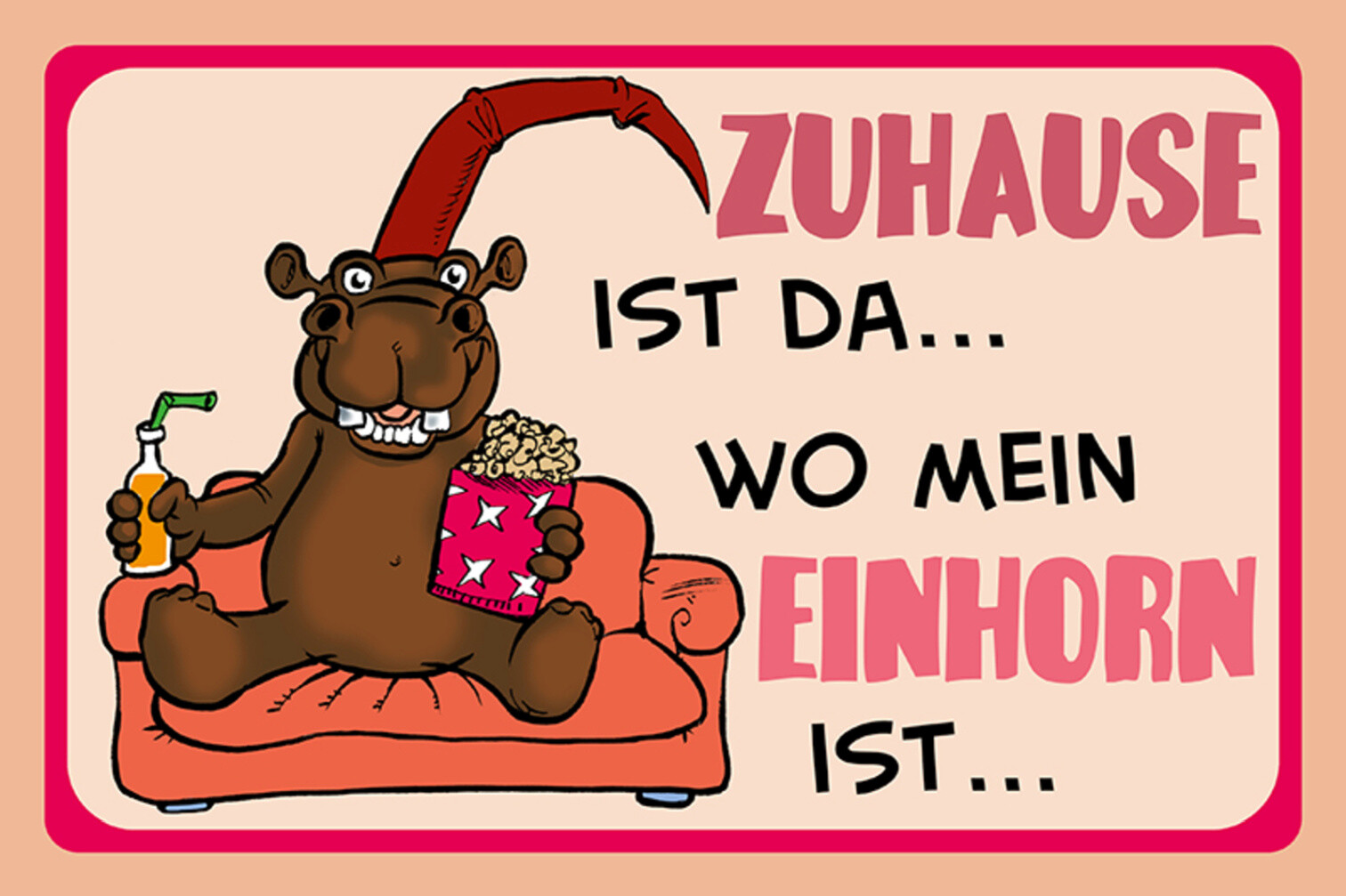 Schild Spruch Zuhause ist da wo mein Einhorn ist Nilpferd JW