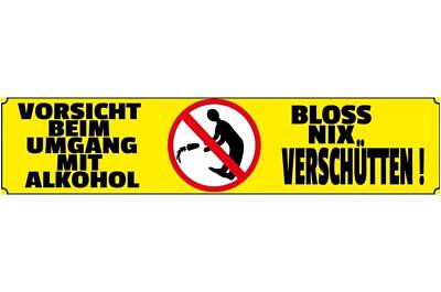 Schild vorsicht umgang alkohol bier glas bar lokal wirt 46 x 10 blech od. holz