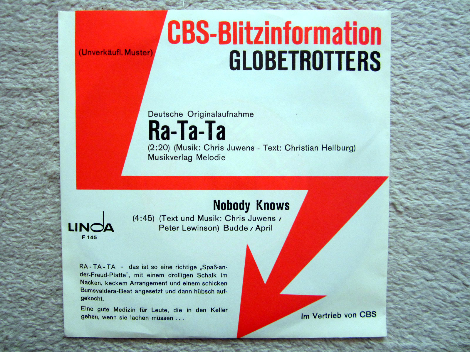 Single / GLOBETROTTERS / MUSTERPRESSUNG / 1970 / RARITÄT /