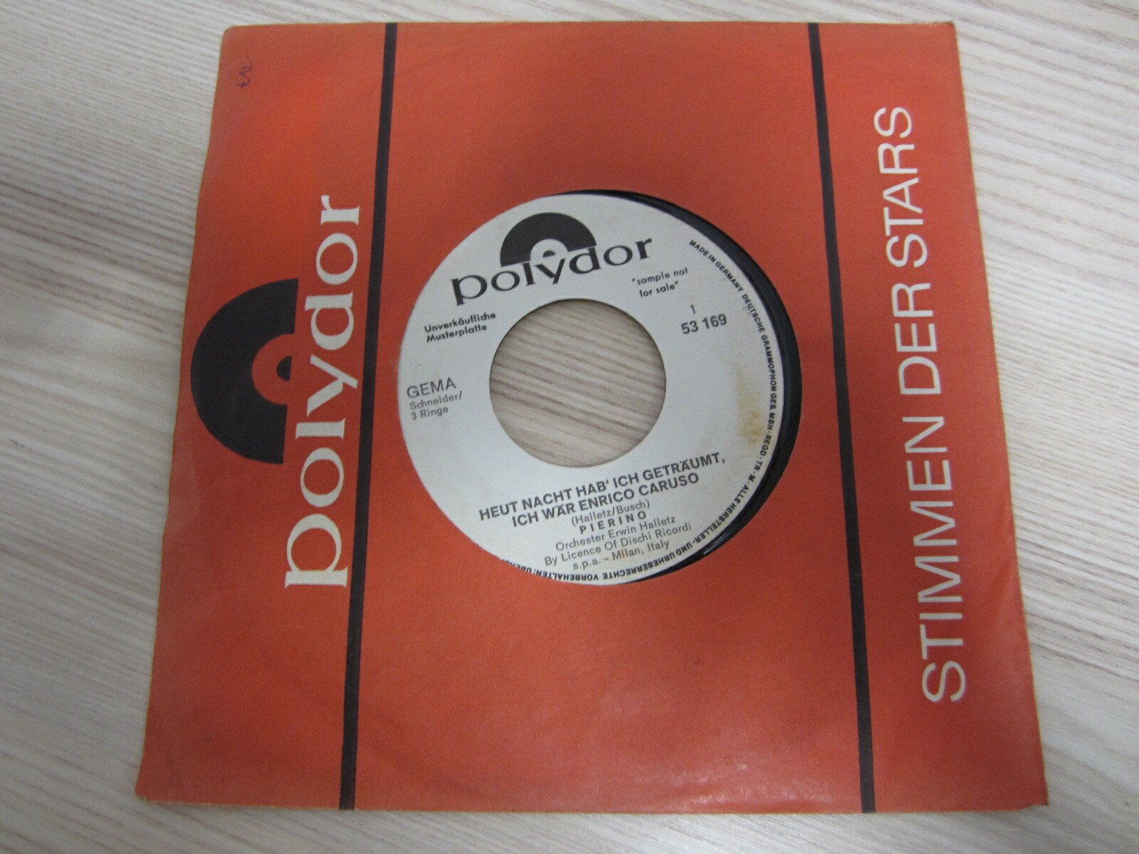 Single / PIERINO - HEUT NACHT HAB ICH GETRÄUMT / MUSTER / PROMO / RAR /