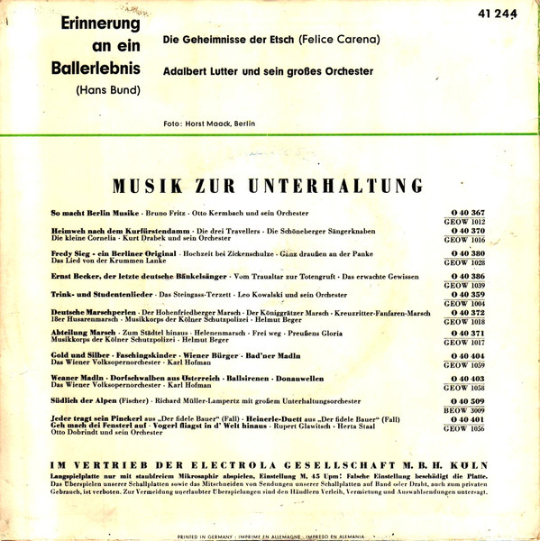 Label: Odeon - Cat#: O 41 244