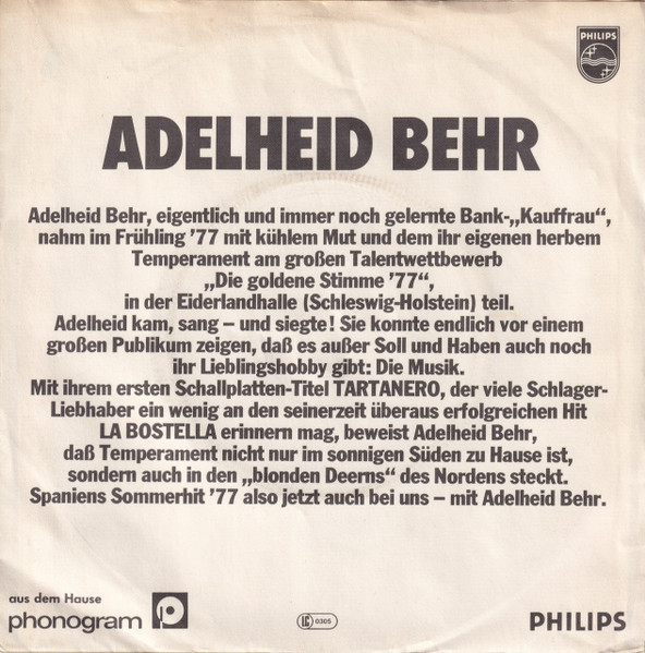 Vinyl / Adelheid Behr - Tartanero / Es War Ein Sonntag