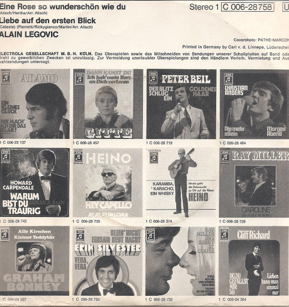 Vinyl / Alain Legovic - Eine Rose So Wunderschön Wie Du / Liebe Auf Den Ersten Blick