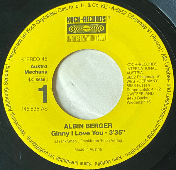 Vinyl / Albin Berger - Ginny I Love You