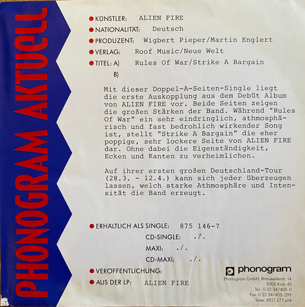 Vinyl / Alien Fire - Rules Of War / Strike A Bargain!