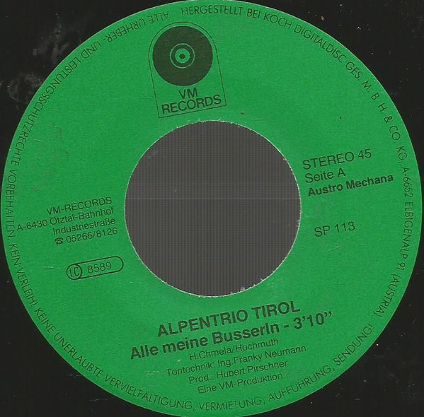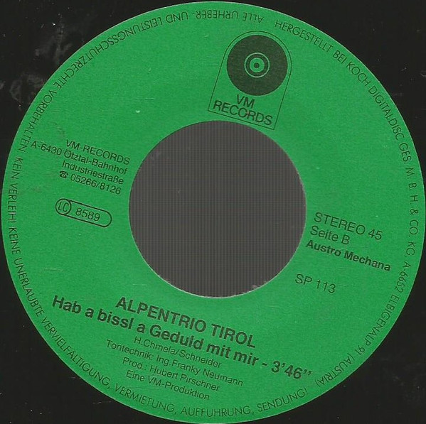 Vinyl / Alpentrio Tirol - Alle Meine Busserln / Hab A Bissl Geduld Mit Mir