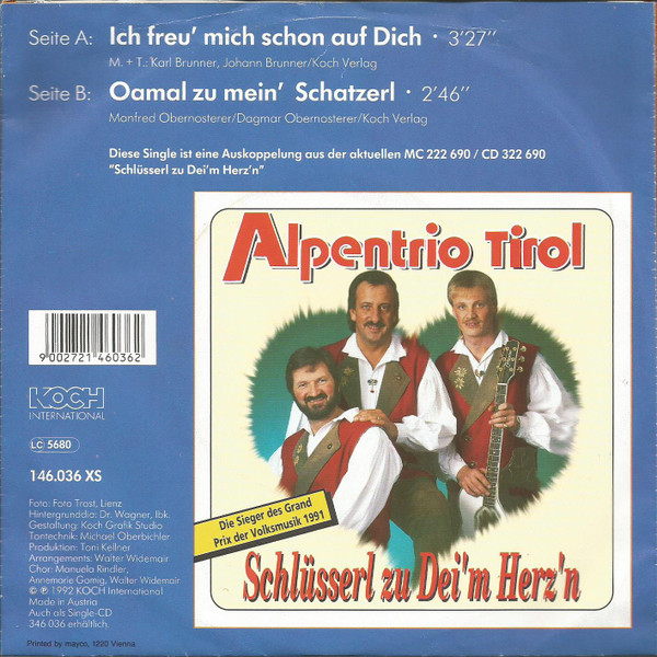 Vinyl / Alpentrio Tirol - Ich Freu' Mich Schon Auf Dich