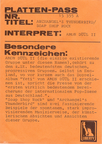 Vinyl / Amon Düül II - Archangels Thunderbird / (Excerpt From) Soap Shop Rock
