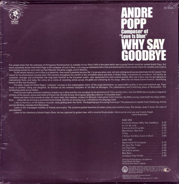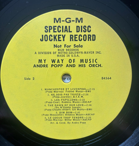 Label: MGM Records - Cat#: SE-4564