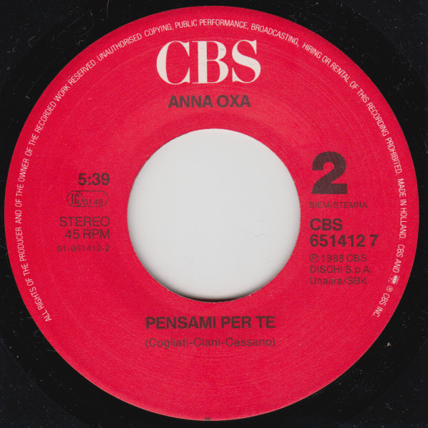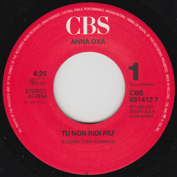 Vinyl / Anna Oxa - Tu Non Ridi Più / Pensami Per Te