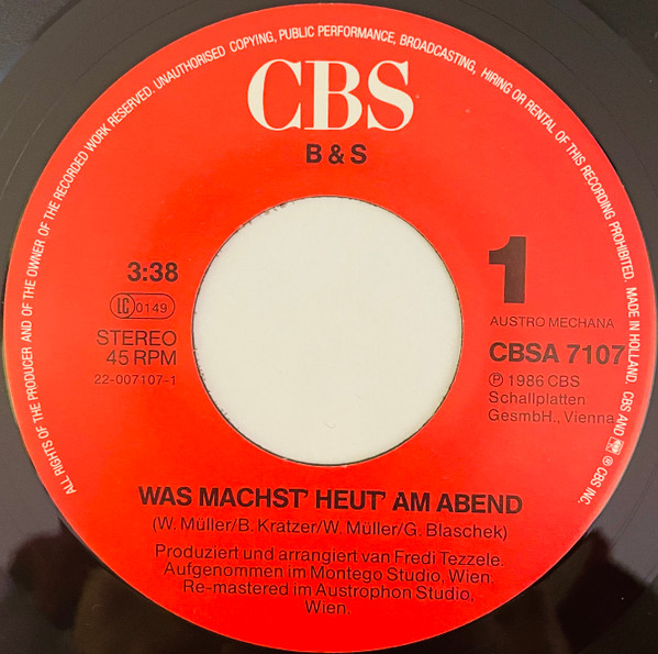Vinyl / B+S - Was Machst´ Heut´ Am Abend