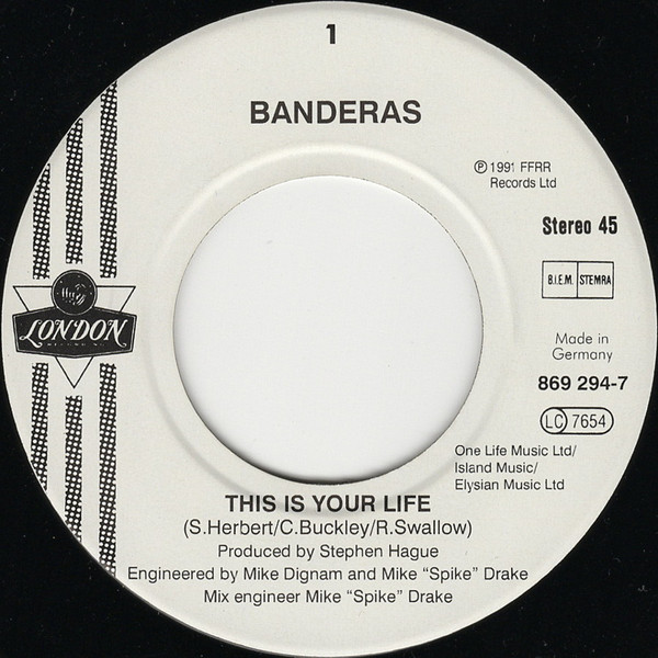 Vinyl / Banderas - This Is Your Life / It's Written All Over My Face