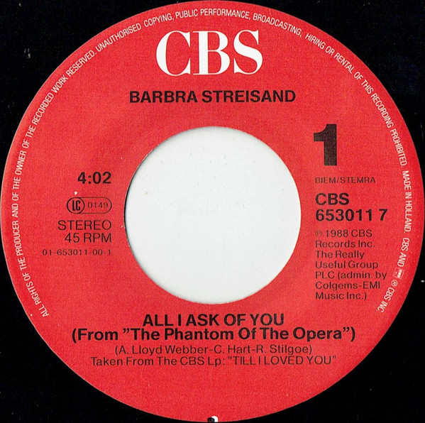 Vinyl / Barbra Streisand - All I Ask Of You